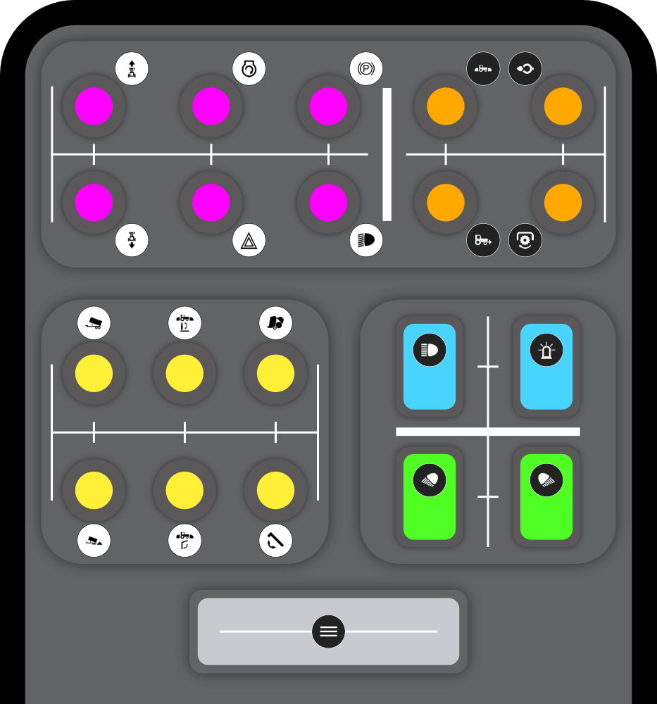 Fast alle Icons sind den realen Abbildungen der Steuerfunktionen in Schleppern, LKW, Bussen etc. nachempfunden.